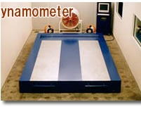 ローラーの数(駆動方式による)とローラーの直径によって装置の大きさが変わりますが、概ね自動車が十分入るスペースがあれば設置可能です。 部屋の中で自動車を走らせることになりますので特にエンジンが発生する熱と排気ガスの処理を工夫する必要があります。 ローラーがパワーを吸収するのでパワーチェックが簡単に行えます。 | エンジン単体だけを運転するための装置ですからエンジンを載せる台や冷却水を冷やす装置、動力を吸収するリターダーなど様々な専用部品で構成されています。 車輌を入れるスペースは必要ありませから部屋のサイズはシャーシーダイナモに比べて狭くできますが、付帯設備を含めて考える必要があります。 | ![]() |